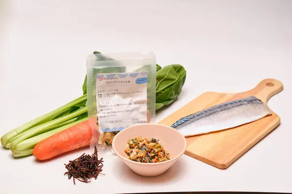 - さばそぼろのひじき煮を解凍するか、下処理をしたひじきをさばと複数種類の具材を組み合わせる。